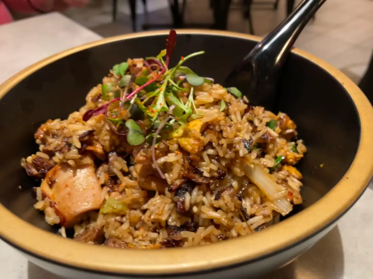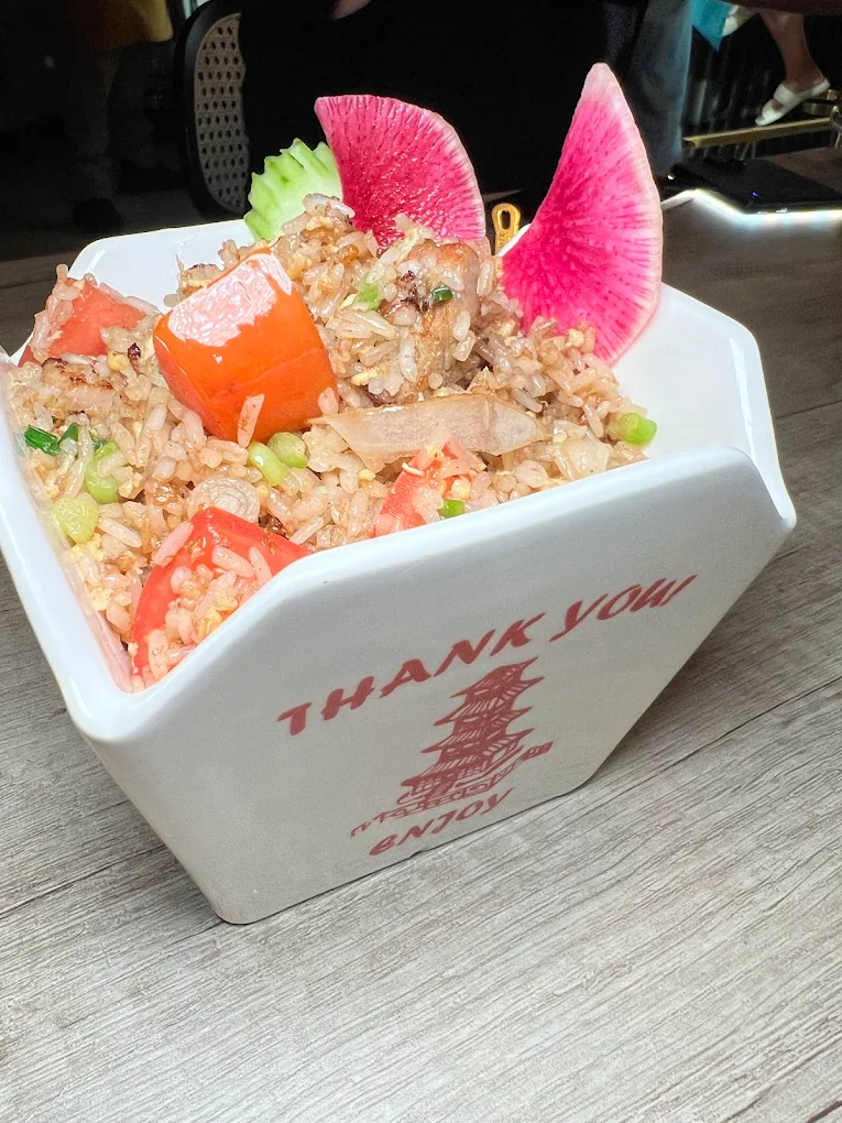 Jinya Ramen Bar on Flamingo Avenue Happy Hour open 3-5 PM and features Japanese cuisine including Crispy Chicken $5, Salmon Poke Tacos $5, Hot Sake $5 and Mimosa $3.