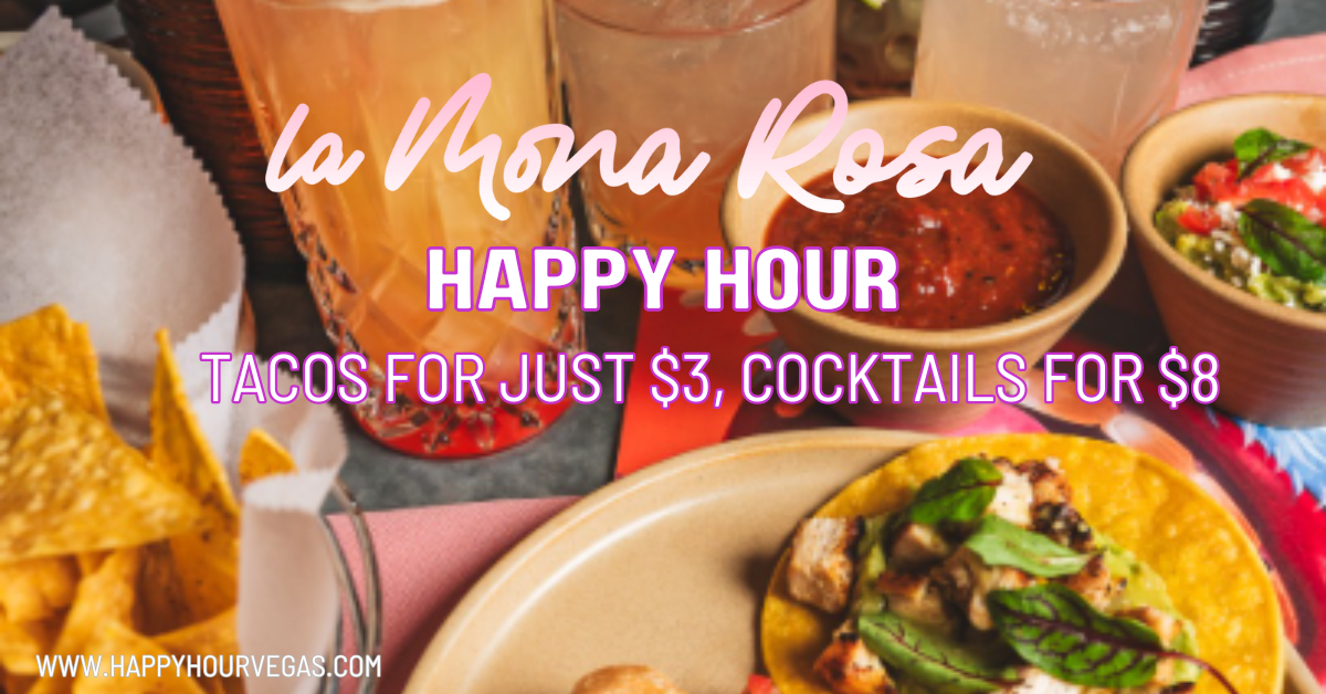Dive into spring break vibes with a Mexican happy hour menu $5 margaritas, $6 beers, $7 wines at this lively cantina on The Strip. Happy Hour Daily from 2 - 6 PM