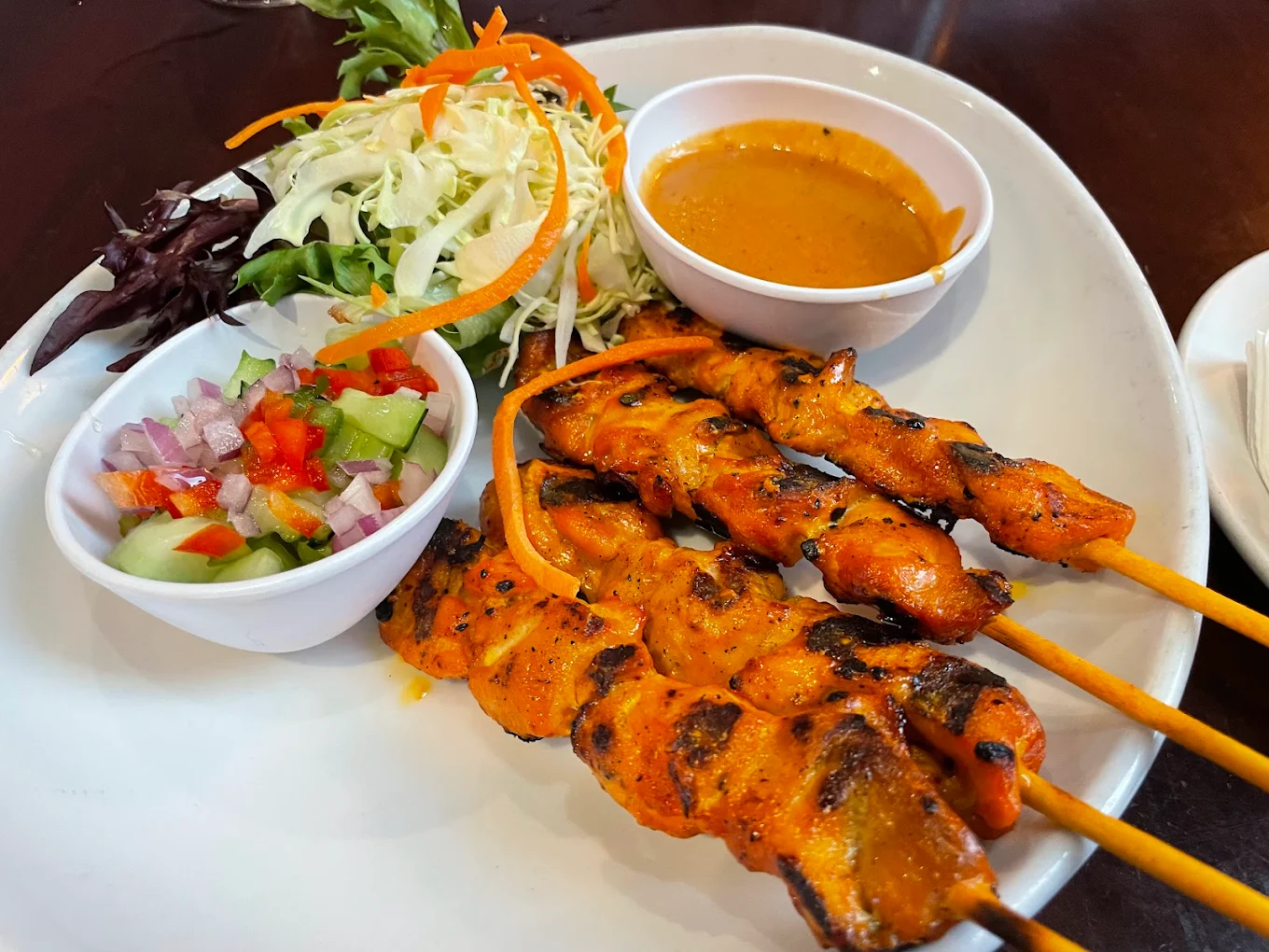 Le Thai 2 Happy Hour Mon-Thurs 4-6 PM and features an authentic Thai menu, Cocktails $6, Wine 20% off, Beer $5, Chicken Satay $10 and Thai Style Wings $11.