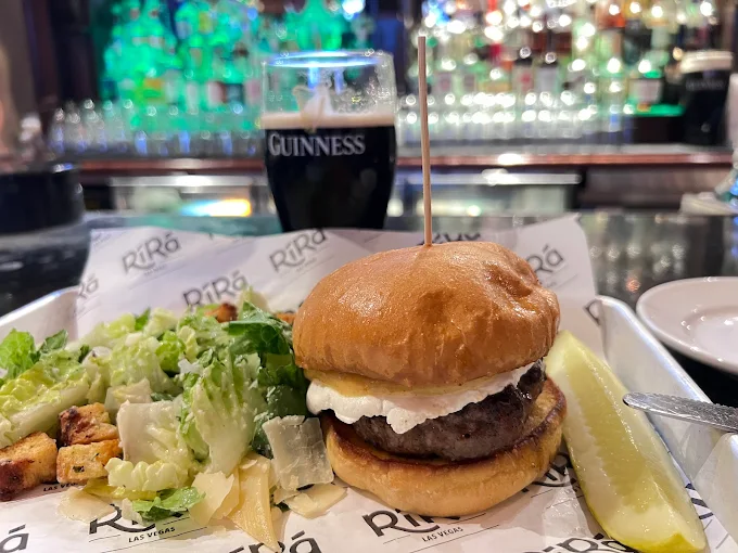 Gordon Ramsay Pub & Grill in Las Vegas serves elevated British pub fare, featuring classics like Fish and Chips $33.99, Grilled Pub Burger $26.99 , and Sticky Toffee Pudding. $14.99