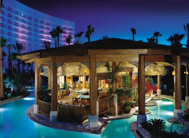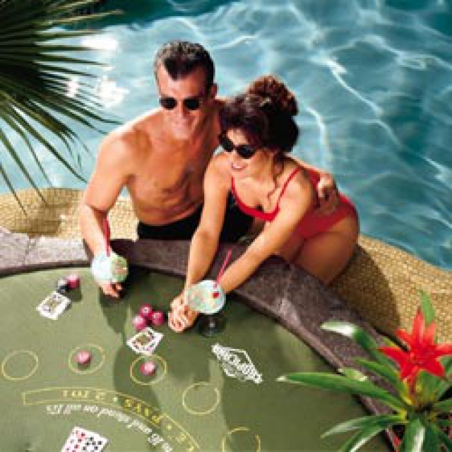 Following Freeman’s short-lived publicity stunt, it wasn’t until 1985 that players could again enjoy the best of both casino and poolside worlds, when the Tropicana introduced two swim-up blackjack tables to its then-newly remodeled pool. The Hard Rock followed suit in 1999 with three swim-up tables at its poolside Palapa Lounge. Both properties’ tables are close to the pools’ edges and the water isn’t too deep, so it should be possible to transport your money without getting it wet. But if it does, don’t worry: They accept wet notes at these special waterproofed tables. Also, the Hard Rock will issue markers at their tables (which have betting limits of $10-$2,000), so you don’t have to carry your cash with you, while the Trop’s tables are equipped with special heated drop boxes to dry paper money. Both properties provide towels to keep players’ hands and chips dry at the tables.