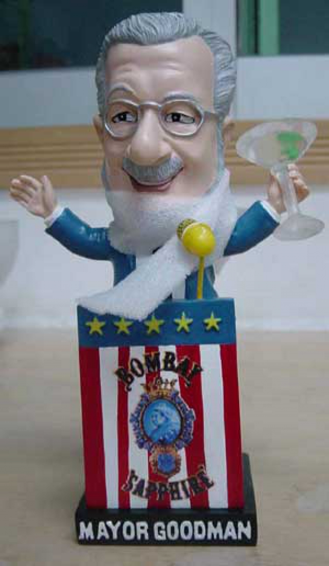 - A third doll was also fabricated by the merchandizing department of the 51s, but had nothing to do with baseball. This one was a giveaway item for a fundraising dinner and reflects the mayor’s notorious penchant for gin: He's standing on a Bombay Sapphire (his favorite brand) podium and holding a martini glass in his hand. We spotted one of these dolls on eBay, minus the martini glass -– it had a starting price of $6.50, but was withdrawn without any bids being made.