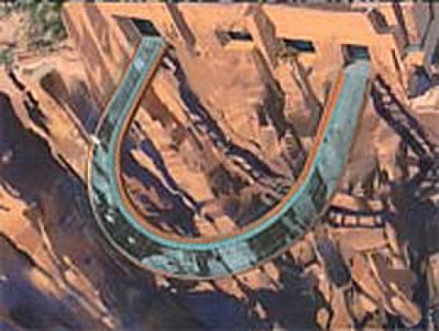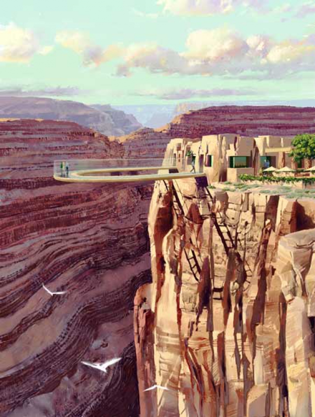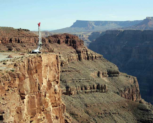 The Skywalk at Grand Canyon is a new attraction being built at Grand Canyon West, 120 miles east of Las Vegas on the Hualapai Indian Reservation. It's a horseshoe-shaped footbridge that extends a whopping 70 feet out over the edge of the canyon, 4,000 dizzying feet above the Colorado River.