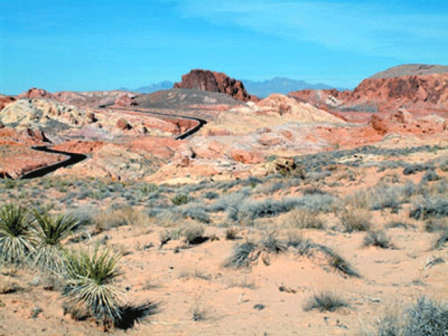 You can make an afternoon loop of it by driving north on I-15 to exit 45B, then heading out NV 147 (E. Lake Mead Blvd.) a ways into the desert. You'll come to a T-intersection where NV 147 ends at NV 167; take a left and continue along the north shore of Lake Mead, passing Callville Bay, Echo Bay, and Overton Beach. You'll see signs for NV 169 and Valley of Fire. Take 169 through the park and out to I-15; from there, go south back into the city.