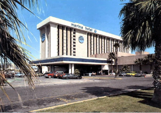 It opened in 1975, just north of Tropicana Avenue on the east side of the Strip at 3805 Las Vegas Blvd. S. It started out with 870 rooms, 156 of which were in a motel building already occupying the property; the 14-story tower was built in front of the motel. The low-rise motel was subsequently knocked down and replaced with a parking lot, leaving the Marina with 714 rooms. (It was one of the few Las Vegas hotel-casinos ever to shrink in size.)