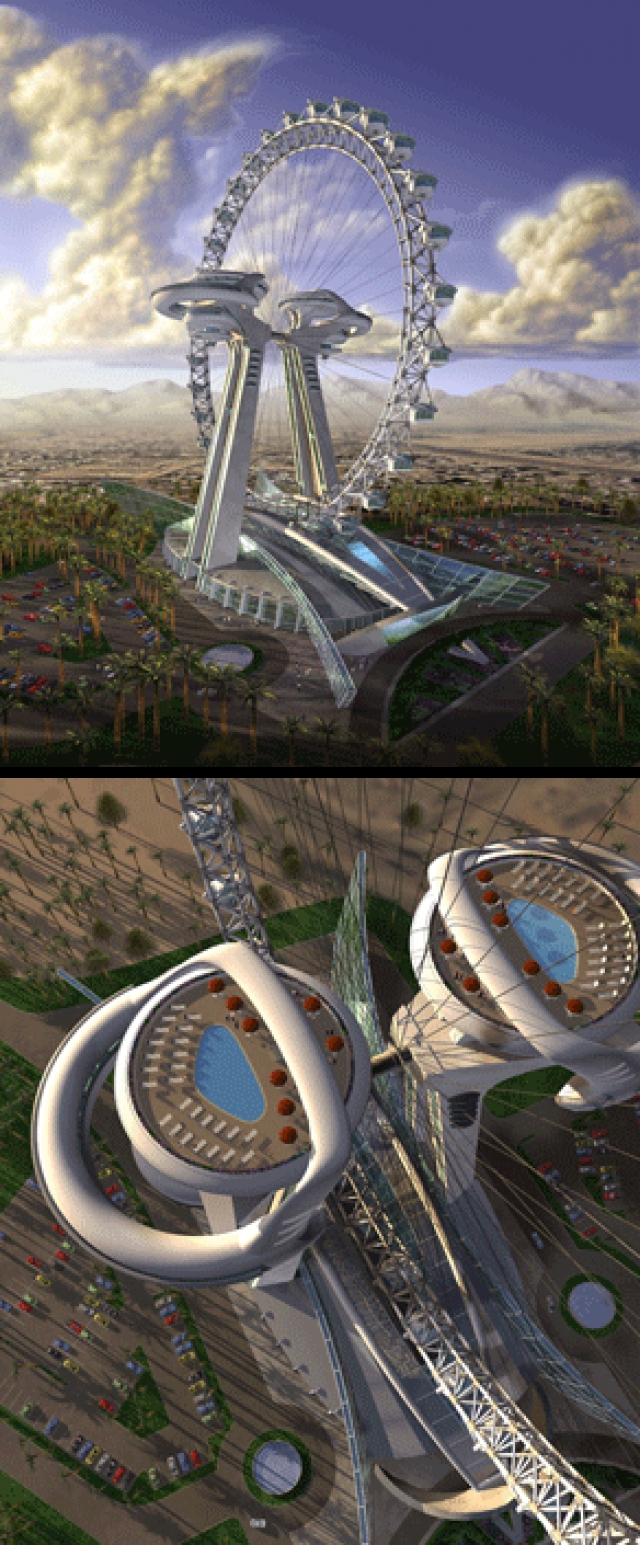 The real old chestnut on the development slab is the plan for a Las Vegas observation wheel, similar, but way more ambitious, than the London Eye. Voyager Entertainment, the principal company (there have been others) that's been touting this idea around town for some years, has so far failed to get the project built in five different locations. The current plan involves the Echelon Place site (former home of the Stardust), but should this location also fall through, they claim to still have a couple of other options up their sleeve.