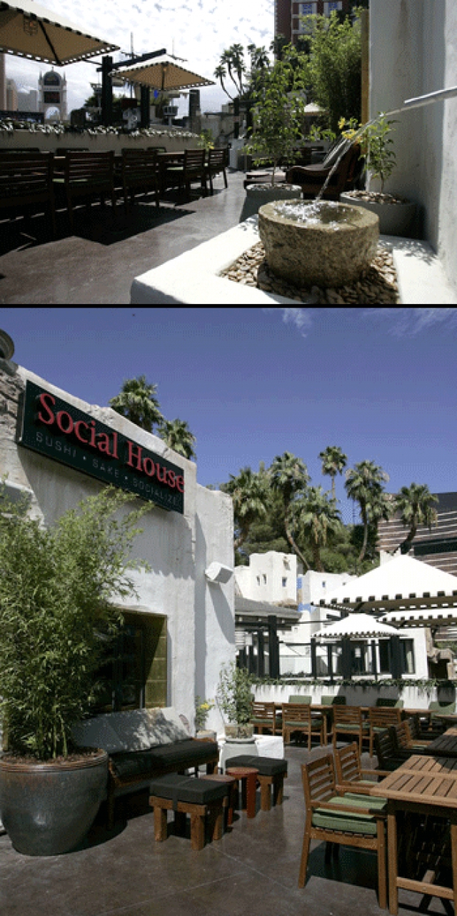 You mention Tangerine and Social House the upscale sushi restaurant and bar upstairs, much favored by the celebrity crowd, has an outdoor patio area with views overlooking the pirate show and across the Strip to the Venetian (see below).