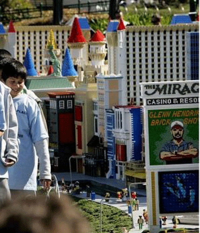 The Legoland theme park in Carlsbad, California, has unveiled a "Miniland Las Vegas," a two-million Lego-brick recreation of the Strip, including Luxor, New York-New York, Excalibur, Mirage, TI, Tropicana, MGM Grand, Venetian, and Paris' Eiffel Tower and Las Vegas balloon sign.