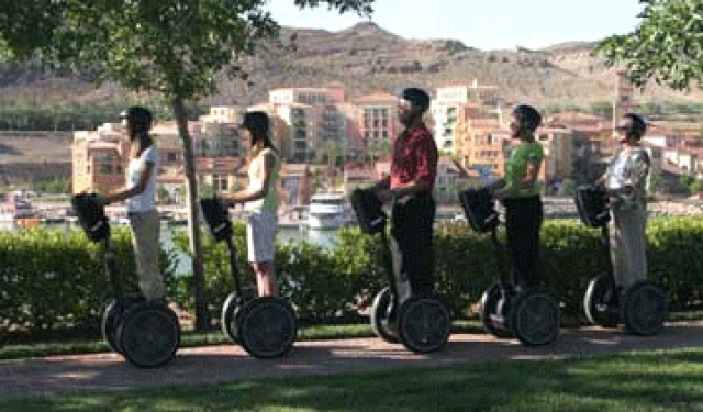A company called Scenic Segways offers the two-hour guided tours around the foothills of Lake Las Vegas Resort that you refer to. It's $96 per person and includes some training from your tour host, who then provides you with live narration via a headset. There are two tours daily at 8 am and 5 pm, and reservations are required. Note that you must be 12 years and over and weigh 250 lbs or less to take part. There's a 10% discount for group bookings of five or more (max. eight guests per tour). Call 435/674-7700 or 1-888-Go-Segway for more details, or visit the Web site at www.scenicsegways.com.