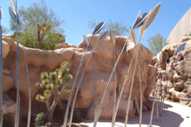 There's an Orientation Plaza at the main entrance, backed by the big amphitheater. A Guest Services building contains a gift shop and café. The Desert Living Center hosts several buildings with a temporary exhibit gallery, a sustainability gallery, a nature exchange, and a kids' outdoor playground. The ORI-GEN Experience houses two historic museums, an indoor theater, and a children's gallery. Demonstration gardens, a design lab, and a technical training center round out the facilities. Under construction is a 79,000-square-foot building that will house the new Nevada State Museum, opening in 2009.