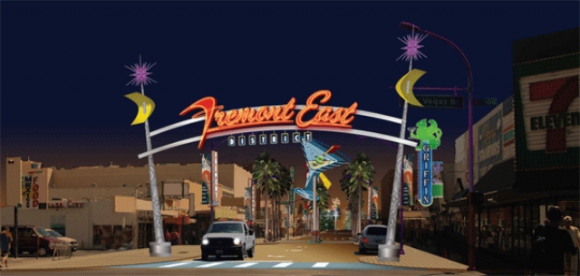 Good timing for this question; the Fremont East District dedication celebration will take place tomorrow night, August 24 at 7:45, in the heart of "Fremont East" on Fremont Street between Las Vegas Boulevard and Seventh.