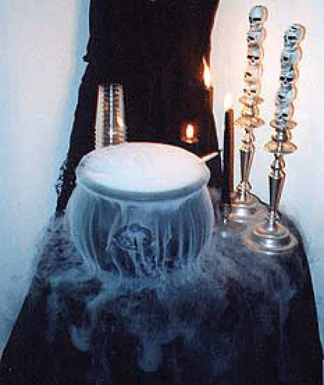 For anyone who doesn't know, "dry ice" is actually frozen carbon dioxide with a temperature of -109.3°F. Unlike most solids, above its freezing point it doesn't melt into a liquid, but instead sublimates directly into a gas, resulting in the "smoky" vapors beloved of '70s rock stars and Shakespearean tragedies.