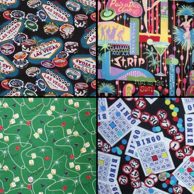 - Last but by no means least, eBay is another treasure trove of gambling and Vegas-themed fabrics, although often the vendor only has a couple of yards or so available. We've included a collage of some of the designs for sale when we checked it out, just to give you an idea of what you might find up for auction.