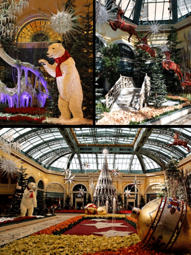 Bellagio Conservatory Holiday Display Bellagio Dates: Dec. 1-Jan. 5 Hours: 24 hrs Price: Free This year's display will feature festive arctic animals, incuding animated penguins and a reprise of last year's pecan-encrusted reindeer, plus a 21-foot tall wreath, borders of red Amaryllis, and a 42-foot Shasta white fir decorated with more than 12,000 lights as the centerpiece.