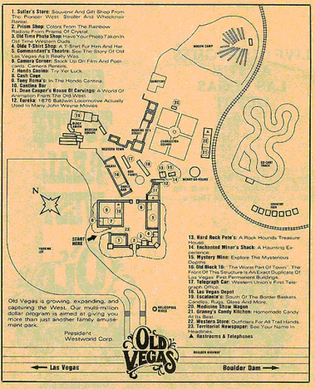 Like the MGM Grand's Adventures amusement park, Old Vegas' family appeal just didn't cut it and in 1983 the site was sold to Marcor Corp. for $4.5 million. The park was closed in 1986 and was torn down around a decade later to make way for a housing development, also named Old Vegas, whose most famous resident was (is?) actor Tony Curtis.