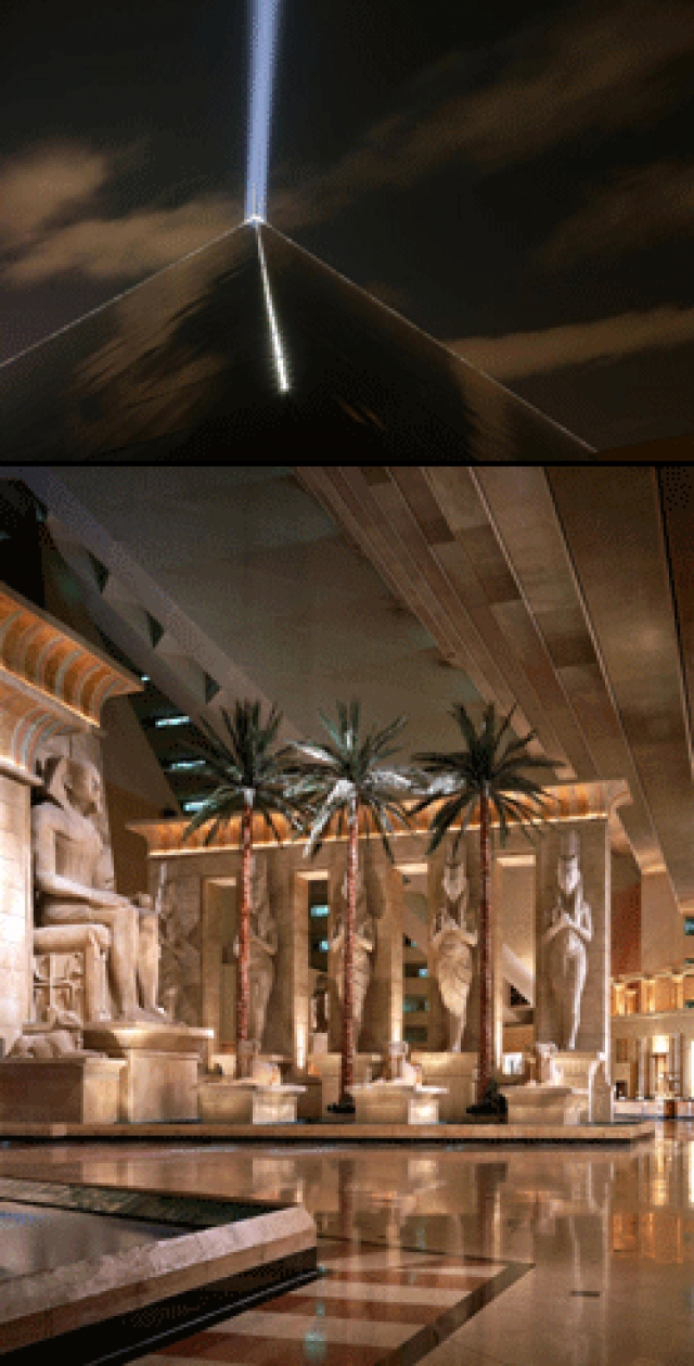 - At 30 stories and 29 million cubic feet, Luxor boasts the world’s largest atrium, which can comfortably accommodate 13 Boeing 747s. It’s also home to the world’s most powerful light beam (42.3 billion candle power).