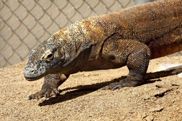 Known as "living dinosaurs" and "land crocodiles," the dragons are about as close to a prehistoric creature as can be seen on this post-historic planet. They can grow up to 10 feet long and 300 pounds and are the largest, and among the deadliest, lizards in the world. Their tails are as long as their bodies. They have a long, yellow, highly distinctive and deeply forked tongue, along with 60 shark-like serrated teeth, many of which are an inch long. A bite from one will ruin your day; their saliva contains 50 different strains of bacteria, which cause septicemia, a rapidly progressing and life-threatening infection.