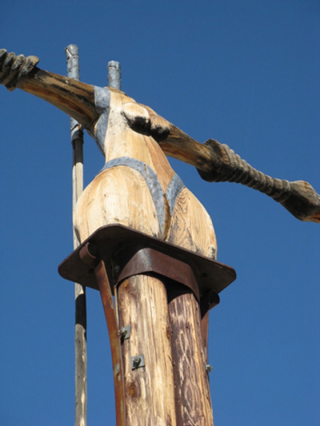 At the turnoff to Rhyolite (heading north on US 95, take a left at the blinking red light in downtown Beatty, then drive four miles southwest on NV 374 and take a right onto the dirt road up to the ghost town) is a museum of sorts, called the Goldwell Open Air Museum and known hereabouts as the Ghost Museum. It was created by a group of Belgian artists, led by the late sculptor Albert Szukalski. Here, you'll find seven outdoor sculptures, including the two you remember: an interpretation of DaVinci's painting "The Last Supper" with white-concrete ghosts set on a wooden platform (this was the original installation, which I saw for the first time in 1988, though it had been there awhile) and your 25-foot-tall Pink Lady made of cinderblocks.