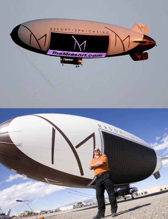 This new 178-foot-long vessel was contracted by Anthony Marnell, owner of the M Resort, who enlisted it as part of the property's launch campaign. At 70 by 30 feet, it sported the world's largest TV screen on the side and its sole purpose while here was to advertise the resort. It traveled nightly in five to six hour spurts at an altitude of between 100 and 1,000 feet over the desert and city, promoting the new resort and its amenities. Click here for a video and blimp-eyed view of Las Vegas.