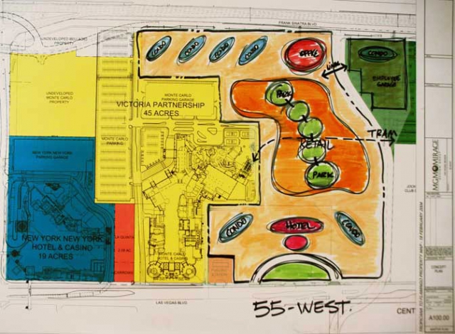 Smith seconds Murren’s account. "The initial CityCenter concept was generated by Jim Murren sometime around February 2004," he told the company’s in-house publication, Momentum. The two roughed out what have been described as "bubble shapes and squiggly arcs scrawled over the thin blueprint lines and block letters of an assessor’s map." It was a long way from what CityCenter was to become but it was a starting point.