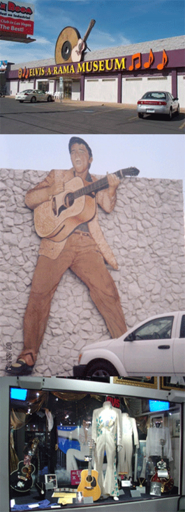 The Elvis-A-Rama Museum was an 8,000-square-foot museum on Industrial Road in back of the Stardust that opened in early 2000. It consisted of the "world's largest private collection of Elvis-owned memorabilia," the largest referring to upwards of 2,000 items, the private referring to Chris Davidson, editor of Hot Boat magazine. Davidson bought most of the memorabilia from Jimmy Velvet, a friend and distant cousin of Elvis who started collecting the items shortly after Elvis died in 1977.