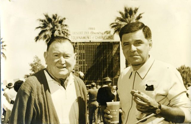 It’s true, we sometimes come up empty, as was the case with a gentleman who looked like a casino executive and was photographed at various Strip events in the Sixties, including a Desert Inn golf tournament (see QoD 8/31/2009). Gene Trimble, of TheChipBoard.com, has been doing some detective work and identified the schmoozer in question as Cleveland mobster Thomas J. McGinty.