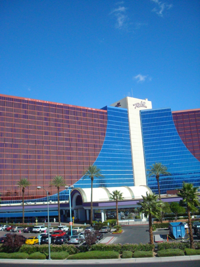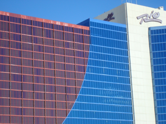 "So far we do not have any plans to re-paint the Rio," writes Caesars Entertainment Public Relations Manager Leslie Thuet. That doesn’t exactly answer your question but LasVegasAdvisor.com’s David McKee has been going by The Rio on an almost-daily basis since 1997 and has seen no painting activity in that time. In fact, as of mid-2007, the exterior clearly had not been touched in several years already and its paint job has flaked, peeled and otherwise deteriorated much further in the four years since.