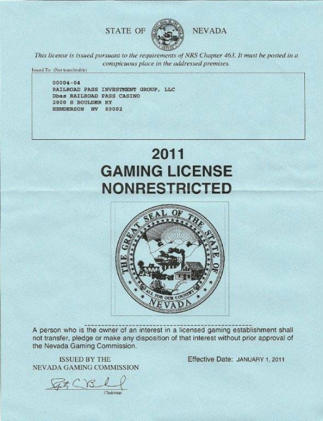 With changes of ownership and status, a new license was issued. The first was approved on July 24, 1974 and awarded to Bob Verchota’s Rail Road Pass Casino. (A Railroad Pass Club casino had opened on the site in 1931, a few months after gambling was re-legalized in Nevada.) Founding owner Robert J. Verchota was granted permission for "Twenty-one games be dealt from a shoe and a discard tray utilized."