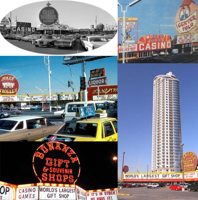 This is where definite confusion creeps in, since all sources we've come across say that Bonanza Gift Shop opened in 1980, "next door" to the Jolly Trolley, which was indeed still in business when the store debuted. What we're assuming is that the Bonanza first opened at #2440, the previous site of Honest John's casino (see photo), and then expanded next door into #2460 when the Jolly Trolley closed.