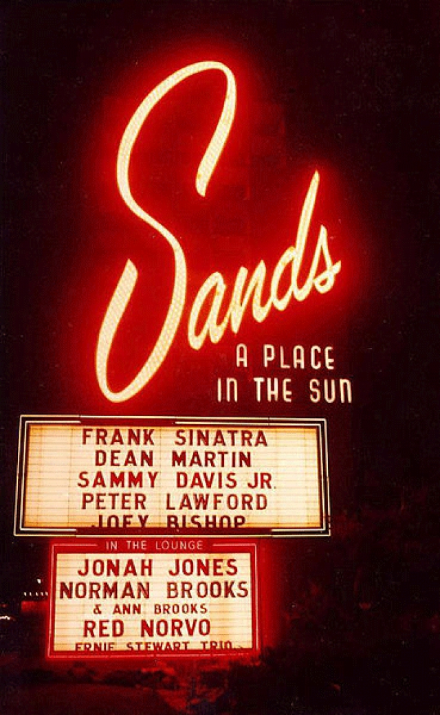 The modern Sands logo is not the one used by the original hotel, however, which was also subtitled, "A Place in the Sun." From what we were able to ascertain from our copious digital digging, the last time the logo from the 1952 original was purchased was by Greate Bay Hotel and Casino, Inc. Corporation of New Jersey, back in March 2003. The company abandoned the branded Sands logo trademark a couple of years later, in January 2005, so it looks like it may be up for grabs again.
