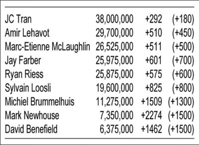 The chart below, lifted directly from the November LVA, recaps the finalists that survived from the starting field of 6,352, ordered by chip counts, along with the current odds on each to win at press time on Wednesday. The odds in parentheses are from July and are included to show how the lines have moved.