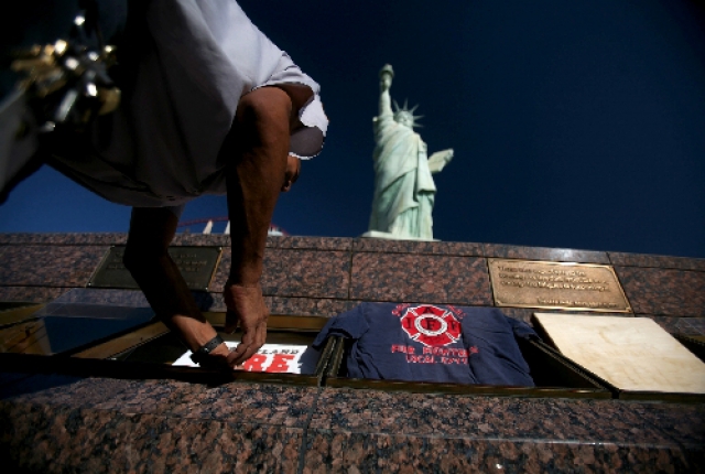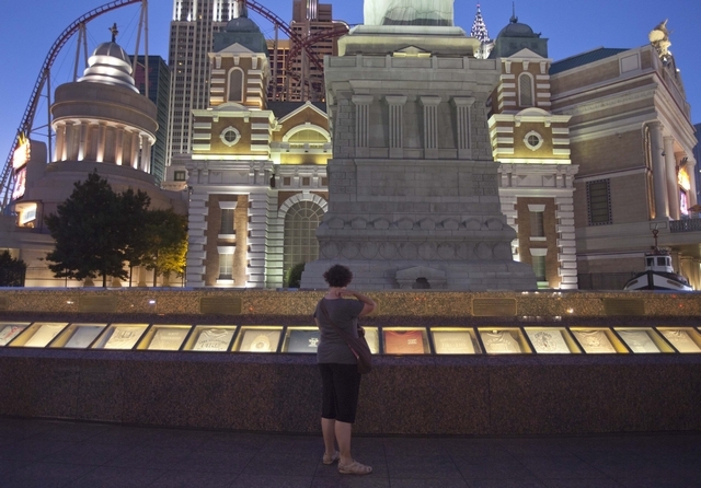 What first started as a spontaneous tribute, as people left notes, t-shirts, flags, photographs, and other keepsakes in the immediate aftermath of the attack on the World Trade Center, was later formalized into a memorial with the help of the university's Gaming Studies Department. The artifacts donated were cataloged and then displayed -- in rotation, since there are more than 6,000 items -- in protective cases in front of the wrought-iron fence that surrounded the themed casino's replica of New-York harbor. But its location, at the corner of Tropicana Avenue and the Strip, was one of the final spaces to be incorporated into the ongoing $100 million construction project that will see the area in front of New York-New York and the Monte Carlo transformed into a public meeting place, retail complex, and outdoor entertainment plaza called The Park, due for completion next spring, leaving many to question what had or would become of the memorial.