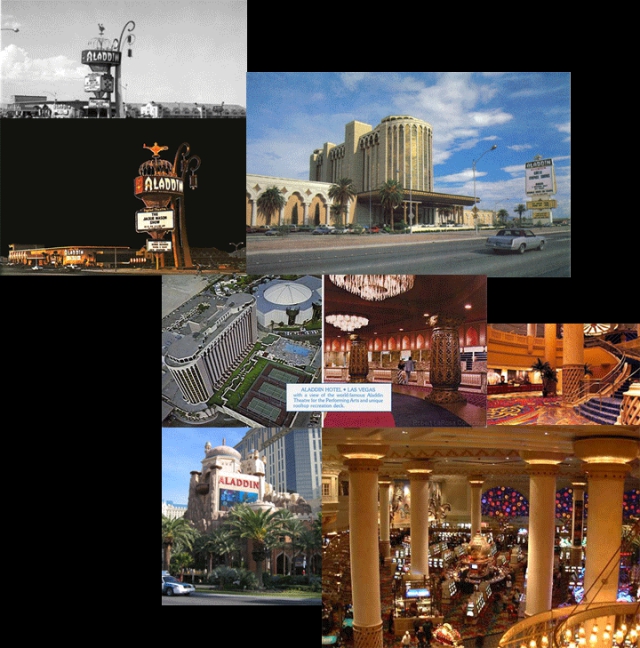 In November 1997, the original and bankrupt Aladdin closed, pending a complete implosion the following April, having been deemed structurally unsound (only the Theater for Performing Arts was preserved). Three years later, in August 2000, this ill-starred property (which was long-rumored to be jinxed) rose once more from the ashes, although as what proved to be more of a turkey than a phoenix.