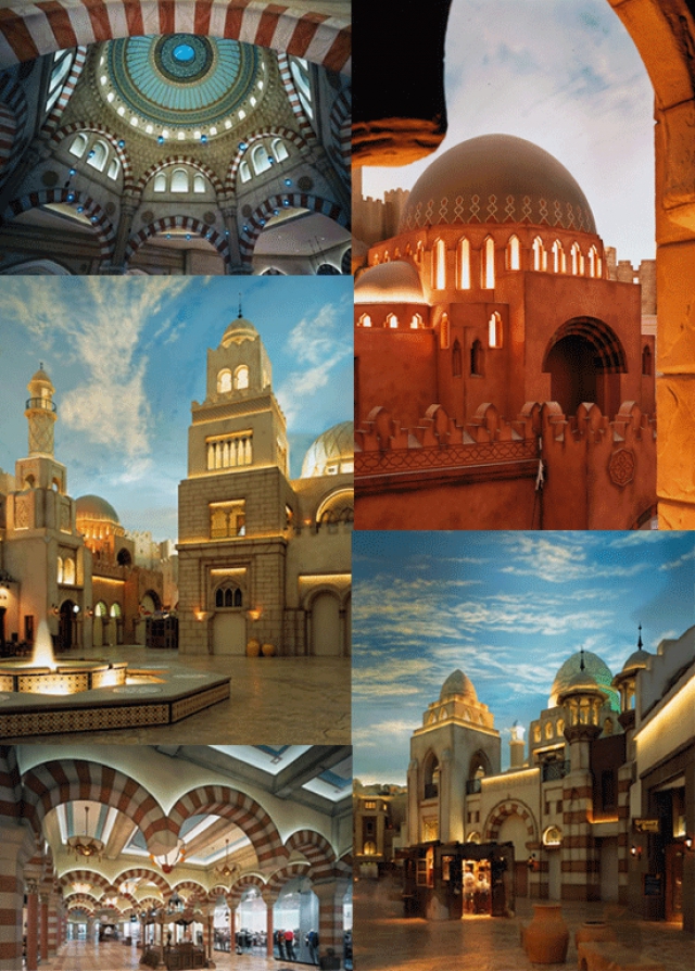Above the casino flew a small herd of "ebony" horses, evoking the enchanted equine of one of Scheherazade's stories, while the casino bars were staffed by costumed bartenders and waitresses and each featured a giant model of an iconic symbol from the Arabian Nights, from the 36-foot-long lamp atop the aptly named Lamp Bar, to the upper-level Roc Nest venue, where drinkers were subjected to the mute scrutiny of the giant eye of the gargantuan bird from Sinbad the Sailor's second voyage.