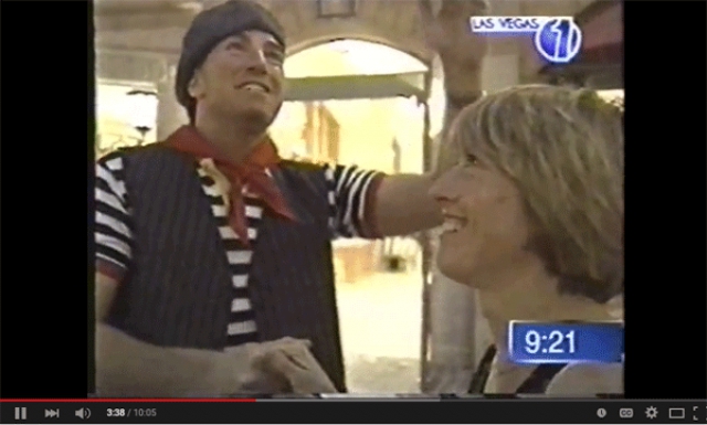 A personal favorite touch, however, was the early fabulous presence of bicycle-riding onion sellers, who sported the cliched striped shirts, cravatte's, and berets straight out of Central Casting, as they randomly wove their way across the casino floor and through the shopping plaza, or delivered a fresh baguette on-demand to a guest room, a service very briefly extended to guests staying at the hotel who suddenly found themselves gripped by the urgent need of a French loaf.