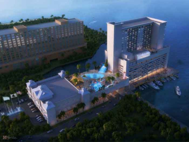 What you're seeing is an in-progress, as-yet-unnamed water park, being developed by Cano Caranna III, the man responsible for restoring the White House Hotel. It was approved last June and was supposed to be finished this month, but it sounds like it's running well behind schedule. When completed it will host a 373-room hotel, a pair of restaurants and a marina. Water-park amenities include a lazy river, an activity pool and water slides. Since the site is zoned for gambling, a casino could figure in the project's future but Caranna has ruled that out for the present.