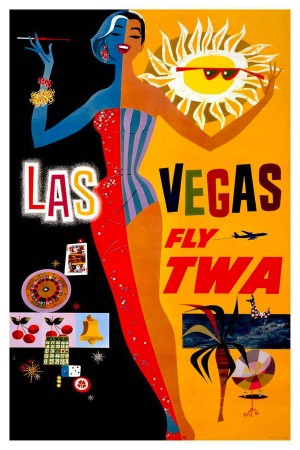 Thanks go out to reader Greg Askins for putting me onto this evocative TWA travel poster from 1965. Some of you might get a kick out of going back to a time when Yr. Humble Blogger was in short pants and a crew cut, and flying was actually enjoyable … and friendly. Now it’s just a damn chore.