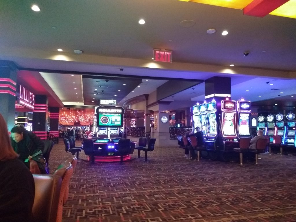 Aforesaid player then scored $1,000 at the Golden Nugget, aided perhaps by sparse competition on the slot floor (below). Nugget management was feeling generous, too, giving her a pair of frying pans (“you can never have too many frying pans”). And, unlike skinflint Caesars Entertainment properties, the Nugget still has a players’ lounge. Good on them.