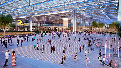 Rivers 78 Gaming: If thrift is the byword of Bluhm’s first proposal, his second is more expensive: $1.6 billion, including a temporary casino on a nearby riverboat. Sited in the mixed-use “78” development, this would offer 300 hotel rooms, eight restaurants, a food court, five bars, an observation tower, a revival of Mister Kelly’s nightclub, 2,600 one-armed bandits and 190 tables. The executive summary touts the location, along a half-mile of the Chicago River, and its vehicular access. It confidently predicts seven million visitors a year. “Construction can begin immediately,” proclaims the brochure and commits to 25% female and minority ownership. Promised is 450,000 square feet of casino floor with 3,300 gaming positions and “a world-class Sportsbook.” (Small wonder Bluhm wants to squelch competing stadiums.) The one non-convention-oriented proposal, Rivers 78 aims to act as a unifying agent for several downtown-area neighborhoods. Rush Street Gaming reminds city fathers that it has built six casinos, “all on time and on budget … [including] Rivers Des Plaines, which has the highest gaming revenue per gaming unit of any commercial casino in the country.” Best not remind City Hall that you foolishly sold it to Churchill Downs …