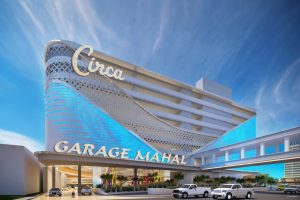 As for specifics, they include 777 hotel rooms (superstitious much?) and Fremont Street‘s longest outdoor bar. Bring it on! The roof will be crowned with a ginormous HDTV set, overlooking the multi-pool amphitheater (replete with cabanas and all that exclusivity-conducive stuff). On a more common-man level, the “Garage Mahal” (yes, that’s its