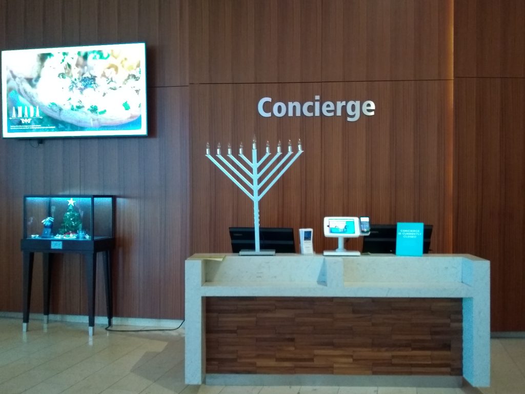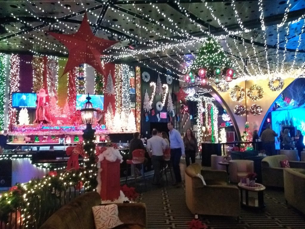 Returning to Ocean, we don’t know which is more dispiriting: the puny menorah or the unmanned concierge desk. To venerate Santa Claus, however, no expense was spared, as can be seen below in a photo of the “Jingle Bell Bar.”