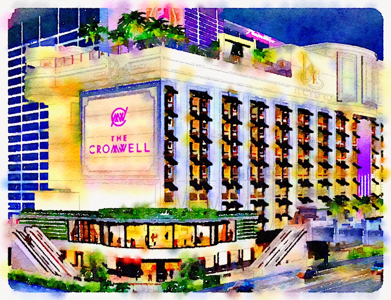 WaterlogueIs the megaresort era over? It had a pretty good run, from 1989 until the Great Recession. That’s a solid two decades. There are still one or two megaresort projects still out there, notably Genting Group‘s Resorts World Las Vegas. But they feel like anachronisms. Now the buzzword is “boutique” and small-is-beautiful is the mantra. The most truly boutique-y are The Cromwell, with its 188 rooms, and the 181-room Nobu Tower at Caesars Palace. (Whoever thought we’d equate Caesars Entertainment with intimate settings?)