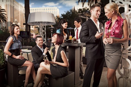 It is difficult to say what looks phoniest about that picture: the cryingly obvious studio background of Venelazzo; the frozen grins on the faces of the agonized-looking models; or maybe it’s the fact that you could go into any Vegas night spot you like and see not one person dressed remotely as well as the people in this shot. Frankly, our reputation as “a place people go to dress badly” is well-earned several times over. I wouldn’t mow the lawn in what some people consider proper gambling and Vegas-evening attire. (Seen recently: casino patron at Caesars Palace in flip-flops, bathing trunks, reversed ball cap and nothing else.) Anyway, the nice people at Rhumbar in The Mirage want you to know that they’re having a weekend-only happy hour — or “day parties,” as we pretentiously call them here — noon to five, with $5 booze. That’s a big step in the right direction, here in the Land of the Eight-Dollar Beer. I’ll drink to that.
