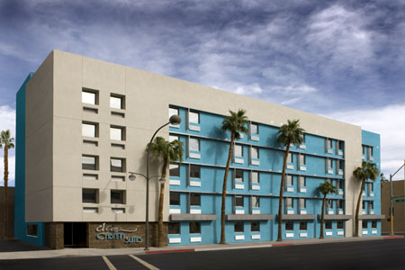 "The Cabana Suites will bring the spirit of 1950s South Beach to Las Vegas with modern and stylish rooms and an outside design that has a contemporary Art Deco feel, reflecting the energy of downtown Las Vegas … The new hotel will bring an artistic style that has not been seen in downtown Las Vegas, and its sleek design and style fits in perfectly within Las Vegas’ arts district.* Also, the Cabana Suites will offer cost friendly luxury that anyone can afford … iPod docks and flat screen HD televisions, an expanded entrance lobby, an enhanced fitness center and a landscaped walkway providing convenient access from the Cabana Suites to the El Cortez."