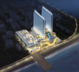 Developers of Revel, the long-suffering Atlantic City megaresort-in-progress (left) have been shopping the project around Wall Street. Their task is being made more difficult as a two-casino package of small-scale properties grinds inexorably through the New Jersey Legislature. Revel‘s gonna be a tough sell if you could build something only one-third as big and one-fifth as expensive. Holy improved ROI, Batman! At least the present form of the “boutique casino” bill contains a tax penalty for developers who don’t expand their properties over time, throwing a sop to existing operators who have no choice but to maintain much larger casino-hotels.