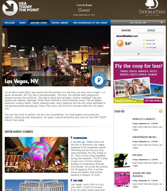 Remember those USA Today travel guides whose writing put me hopelessly behind the S&G 8-ball? (Two hundred and thirty-five e-mails still unread!) Well, if you’re staying at a Hilton-branded property (soon to include much of Trump International), you can view them through an online portal called The Point. They are also destined for inclusion on Hotelme.com, at a time yet to be announced. Anyway, the first update looms near, so I’m not too many places and events from the first edition have to be de-listed … although Taylor Hicks is definitely “in” and the Flamingo Las Vegas wildlife area will receive serious consideration. Except for that “Quad” stupidity, Caesars Entertainment has played a good PR hand this week. As for Trump, my reckoning is that, depending on the performance of those first 300 Hilton Grand Vacations units, what we’re seeing is the early phase of a stealthy Trump retreat from Vegas, ceding the field to Hilton.