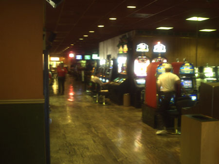 So on a Saturday afternoon, I went in there with David McKee, and on Monday went back, first alone and later with my wife. The following is a recount of those trips blended together. The first impression, coming in from Fremont Street, is of a basic, locals casino. The thing I noticed immediately is that the small portion of the floor that is carpeted uses the same carpet that is in the Union Plaza. A unique and bright retro design.