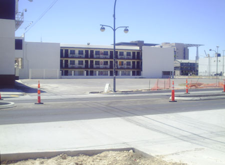 Proceeding eastward, one passes the block that the El Cortez occupies on the north and — on the south — the brown-brick, windowless building that Terry Caudill (owner of the Four Queens and Binion’s Gambling Hall) and other partners have recently secured from the city. I think they plan to develop it with retail, entertainment and residential purposes in mind. My dream for this block would be that the east end of the El Cortez property, which is a parking garage, would include some storefronts or entryways into the property. Having to walk a half block in that area without any haven can give a person pause, I think. Which is a fancy way of saying that I was nervous walking that half-block because I was afraid I might get accosted without any help or protection.