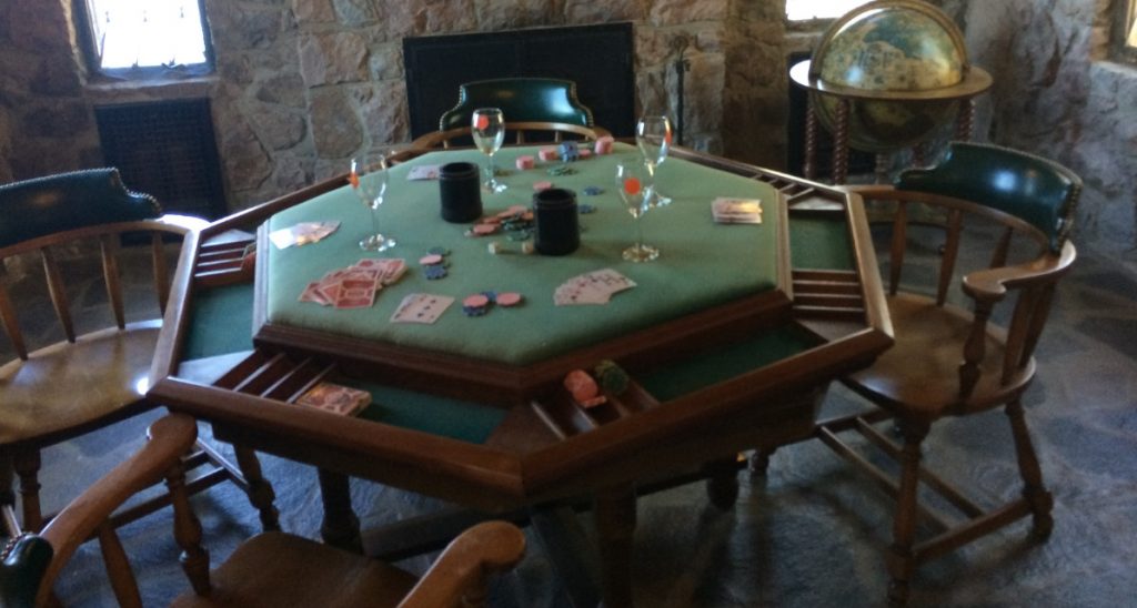 The poker table where local sharps liked to relieve George of some of his riches. By all accounts, he was a sore loser. Also, the house rule was, “You can play, but you can’t stay.” No guestrooms were built in the lodge.