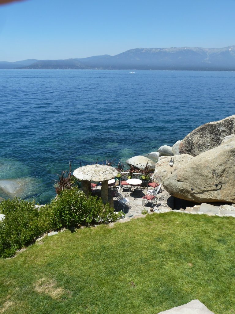 lighthouse on the point of the property from which Whittell could see the entire Lake Tahoe; Sand Harbor, part of Lake Tahoe-Nevada State Park and the original 10 acres that Whittell had to give up visible in the distance.